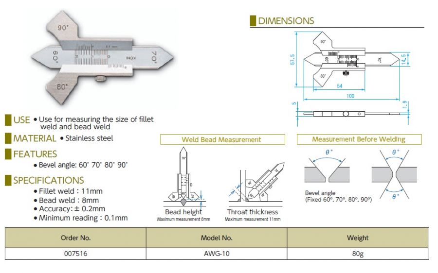 Thước đo mối hàn AWG-10 sử dụng để đo kiểm mối hàn